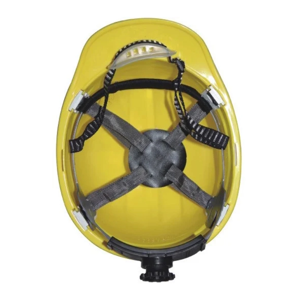 Каска из высококачественного PE пластика. Высокое защитное действие против механических воздействий и высокая химическая устойчивость. Безупречная посадка и высокий комфорт ношения. Оголовье из текстильных лент имеет 4 точки крепления. Регулируемое наголовное крепление реечного типа с храповиком для правильной подгонки по размеру головы.